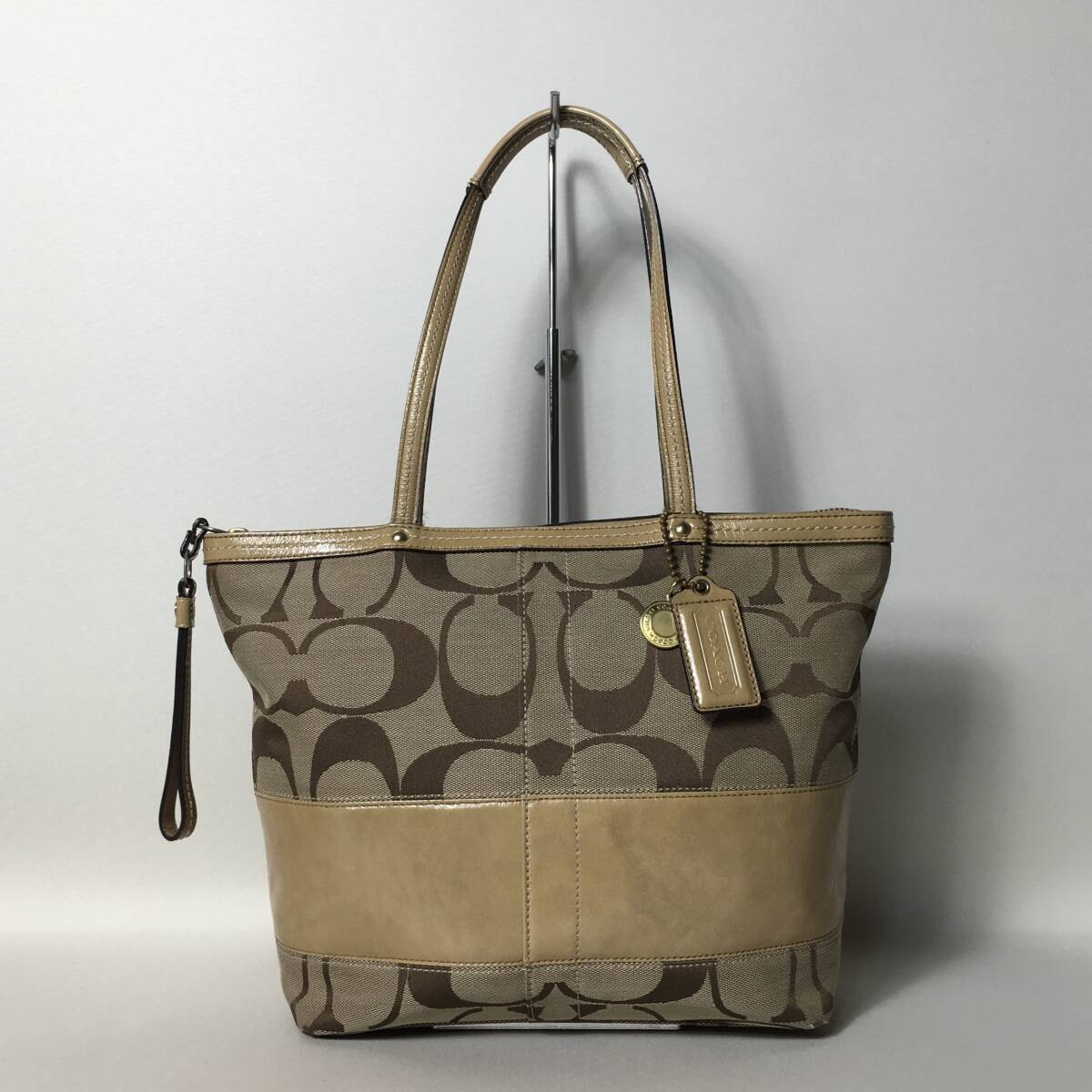 > 75B223|美品|コーチ シグネチャー トートバッグ ライトブラウン