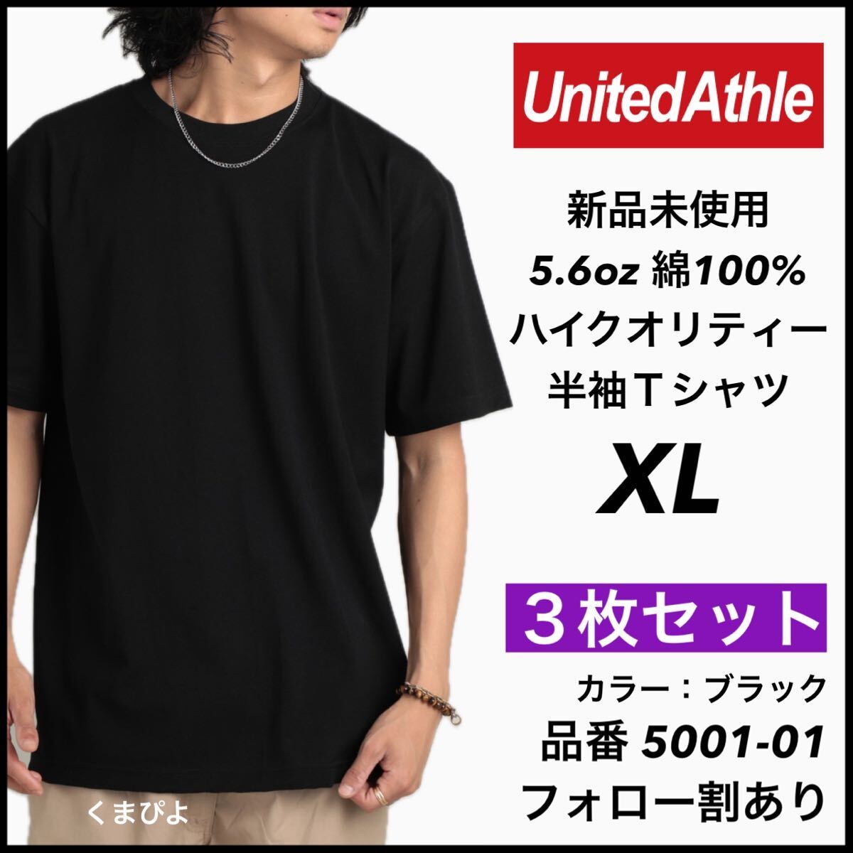 - 新品未使用 ユナイテッドアスレ 5.6oz 無地 半袖Tシャツ 黒 ブラック XL サイズ 3枚セット United Athle