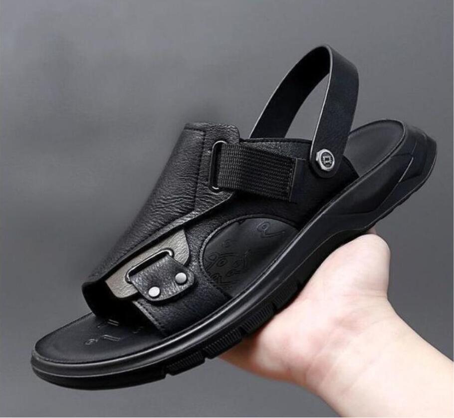 - 人気推薦/コンフォートサンダル ビーチサンダル メンズサンダル ぺたんこ ローマブール レザーサンダル 2WAY 可動式ストラップ / ブラック