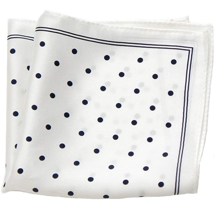 - ◆ポケットチーフ メンズ 結婚式◆日本製◇白×濃紺/ドット プリント 枠付きポケットチーフ シルク100% メール便可 acc-DT06