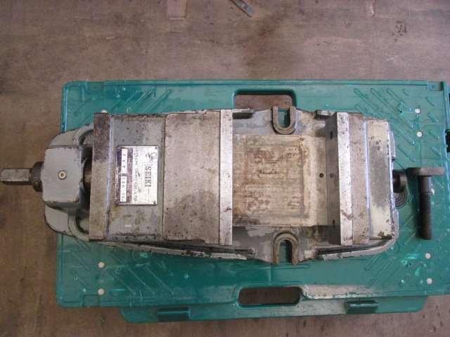 メーカー:日立精機 型式:2VP 年式:不明 USED(ユーズド) 取扱説明書ありません 日立精機 マシンバイス 型2VP ハンドル無しです。 外形サイズ:幅24×奥行56×高さ12.5cm 40kg 締め付金具サイズ:幅17×高さ5cm 開口サイズ:~13.5cm 取付穴サイズ:19×30mm・・・上.下位置 、19×35mm・・左右位置 付属ボルト1本は取付用と思われます。(ボルトが少し曲っています) ハンドル取付部・・19mm口です。 清掃後オイルスプレーをしました。 経年品です。汚れ、傷、塗装剥がれあります。 締め付け金具表面に変色(サビ)があります。(10枚目の上下の写真) 台車は出品には含みません。 サイズ:幅24cm 奥行56cm 高さ12.5cm 重量40kg