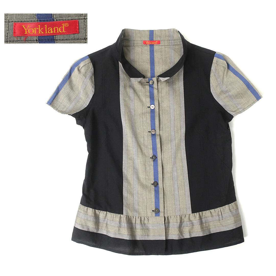 - 美品 Yorkland シャドーストライプ 切替シャツ 上質なサマーオックスフォード生地 (サイズ7)