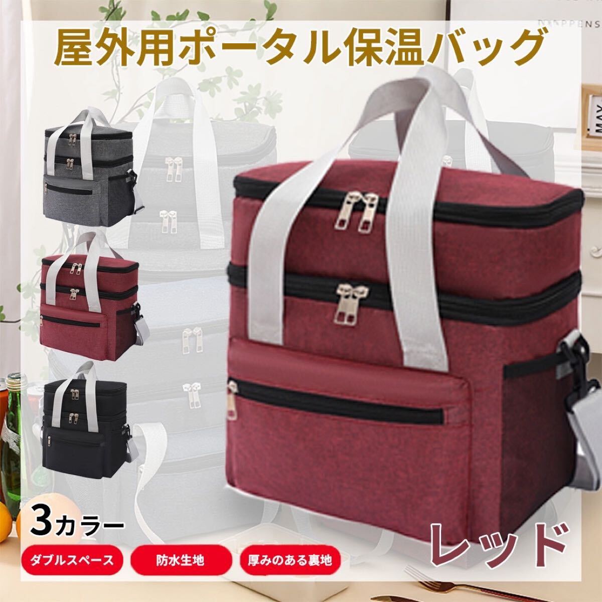 - ポータル保温バック 保温保冷2段バッグ レッド ピクニック 運動会
