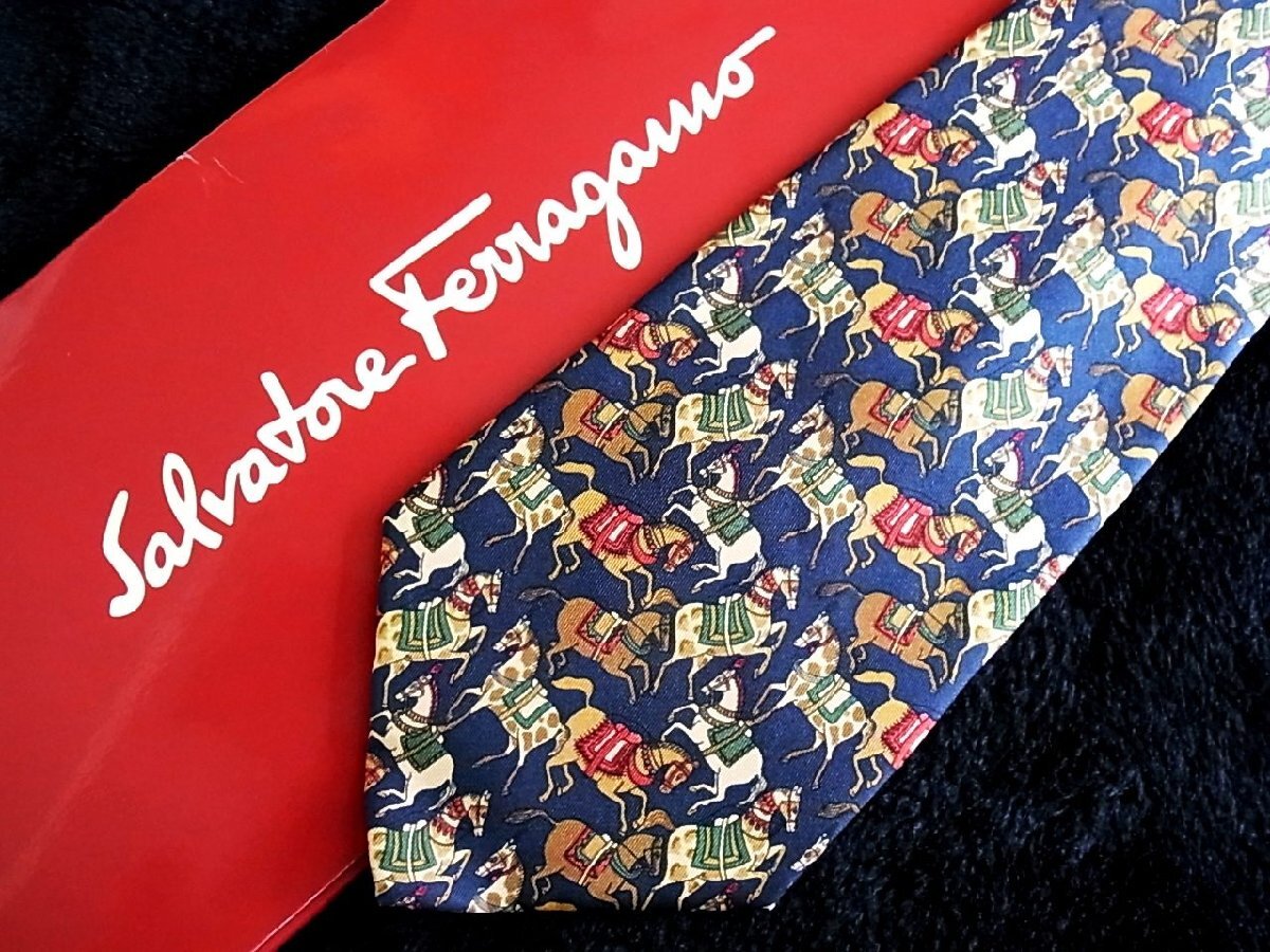 > ♪今週の特売980円~♪4021♪良品【FERRAGAMO】フェラガモ【馬 ウマ 動物 柄】ネクタイ♪