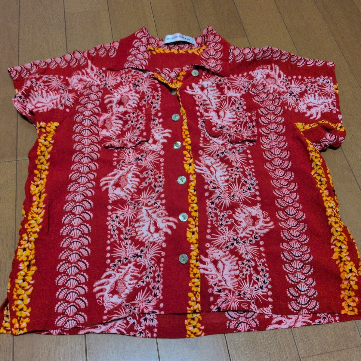 > AS KNOW AS DE BASE アロハシャツ 半袖 古着 総柄 ちりめん レーヨン XSサイズ キッズサイズ 和柄