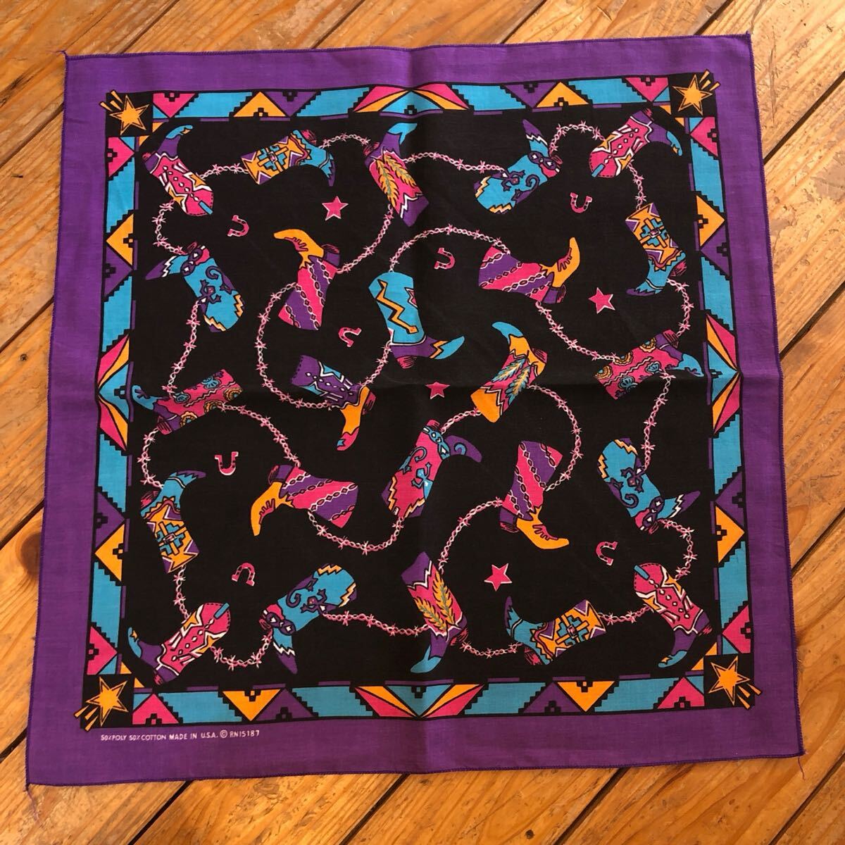 > 送料無料 Vintage バンダナ ウエスタンブーツ柄 ハンカチ アメリカ仕入れ カントリー コーデ 小物 アイテム 雑貨 ヴィンテージ A1704