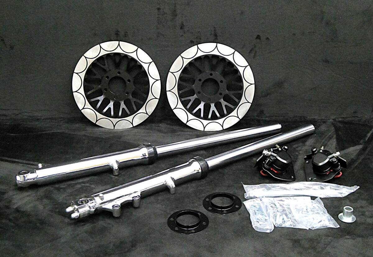 > GS400ダブルディスクセット メッキ トレンチカット/フロントダブル33πフロントフォークGS400E GSX400E GSX400f GSX250E GT380サンパチ