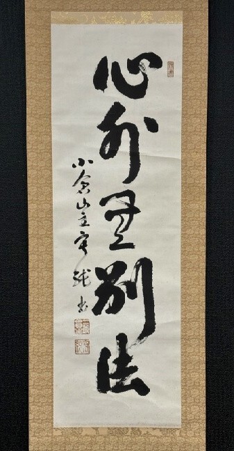 > 【真作】小倉山 二尊院貫主 羽生田寂純 一行書「心外無別法」紙本箱付 検)禅語/墨蹟/掛け軸/書/待合/茶道具 茶掛け 紫野 /書画/花鳥/京都