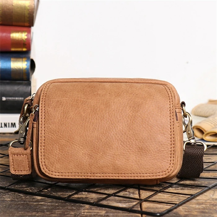 - 男女兼用 メンズ 牛革 メッセンジャーバッグ 斜めがけ ショルダーバッグ 本革 レザー バッグ おしゃれ bg0670 ブラウン