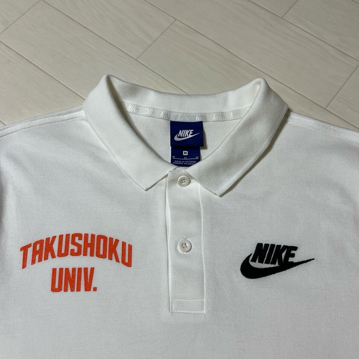- TAKUSHOKU UNIV 拓殖大学 ナイキ ポロシャツ ホワイト 白 半袖 サイズM スウォッシュ 刺繍