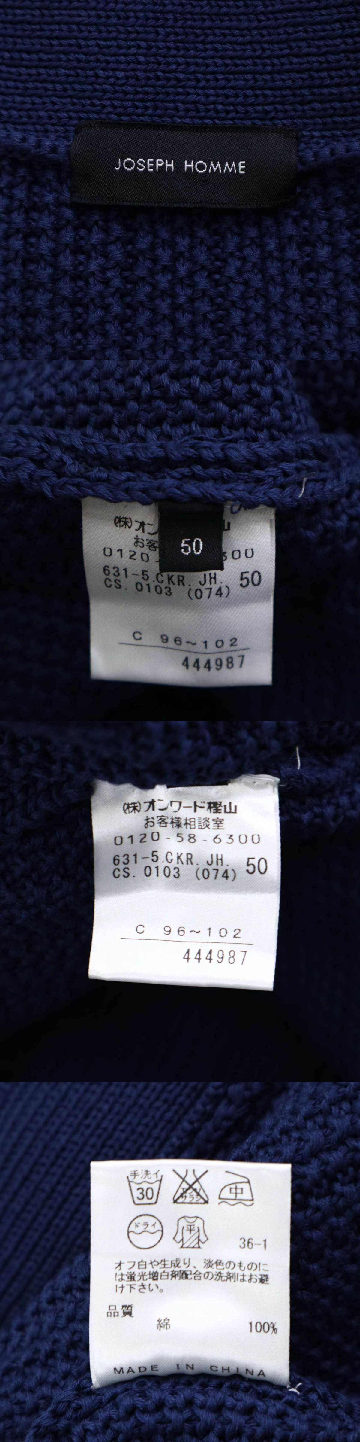 - JOSEPH HOMME ジョセフ オム 通年 コットン リブ ニット★ カーディガン 羽織り Sz.50 メンズ 紺