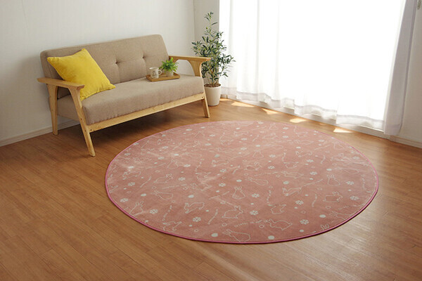 - ラグ 新生活ラグ ピンク約185cm丸 カーペット洗える アニマル柄 ホットカーペット対応 ラビット スノーラビット