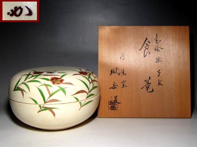 - 鳴滝窯 城岳 撫子絵喰籠 堀内流十二代 兼中斎 宗完花押 e766