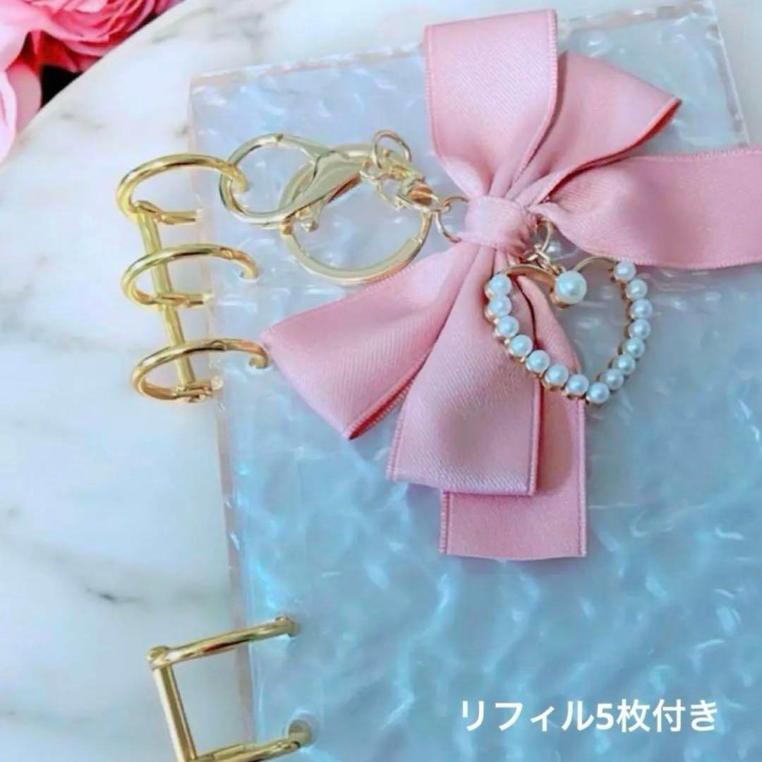 - リボン ピンク アクリルバインダー A6 リボンチャーム リフィル付き 人気