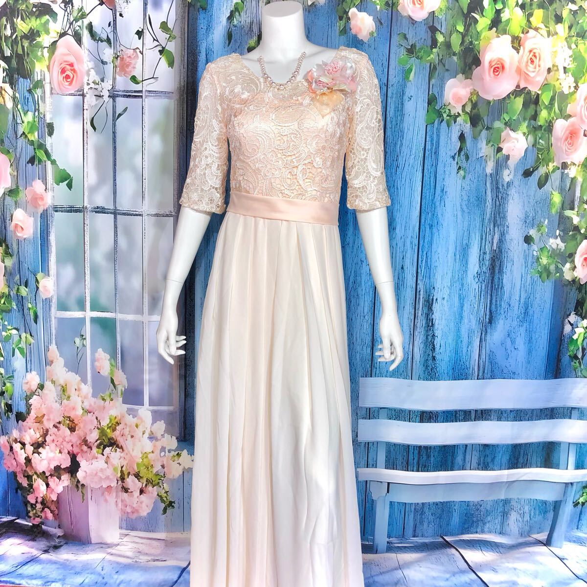 - ベビーピンクパーティロングドレス M