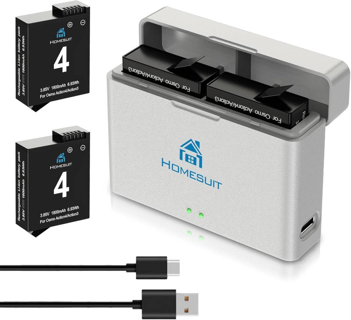 - Hero 13 Enduro バッテリー 充電器セット 2*2100mAh大容量電池 USB 収納式充電器