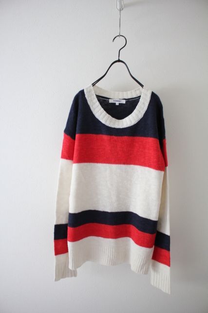 > 【TOMMY】トミー ヒルフィガー コットンニット レディース (S) セーター 白 紺 赤 長袖カットソー 中古