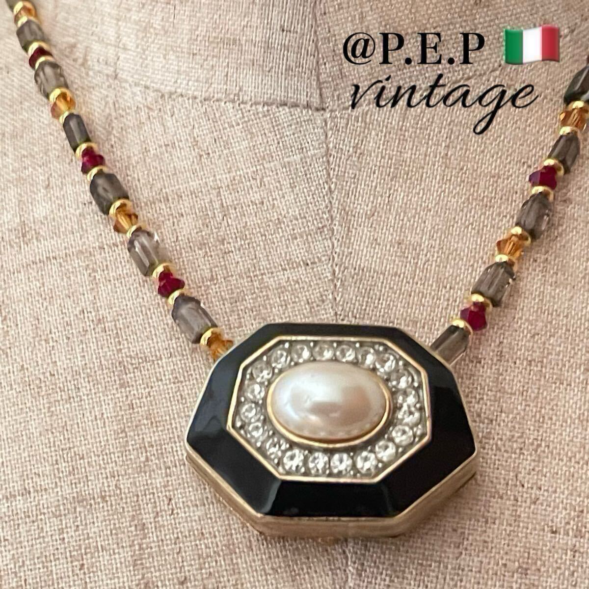 - ヴィンテージ ネックレス Erwin Pearl P.E.P イタリア マベパール風 エナメル ラインストーン ガラスビジュー ペンダント アクセサリー