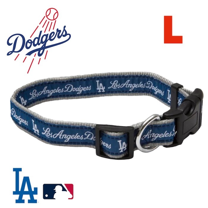 > ワンタッチ首輪・Lサイズ【ロサンゼルス・ドジャース】 Los Angeles Dodgers Licensed MLB公認 首回り 44-70cm 25mm幅 大型犬用