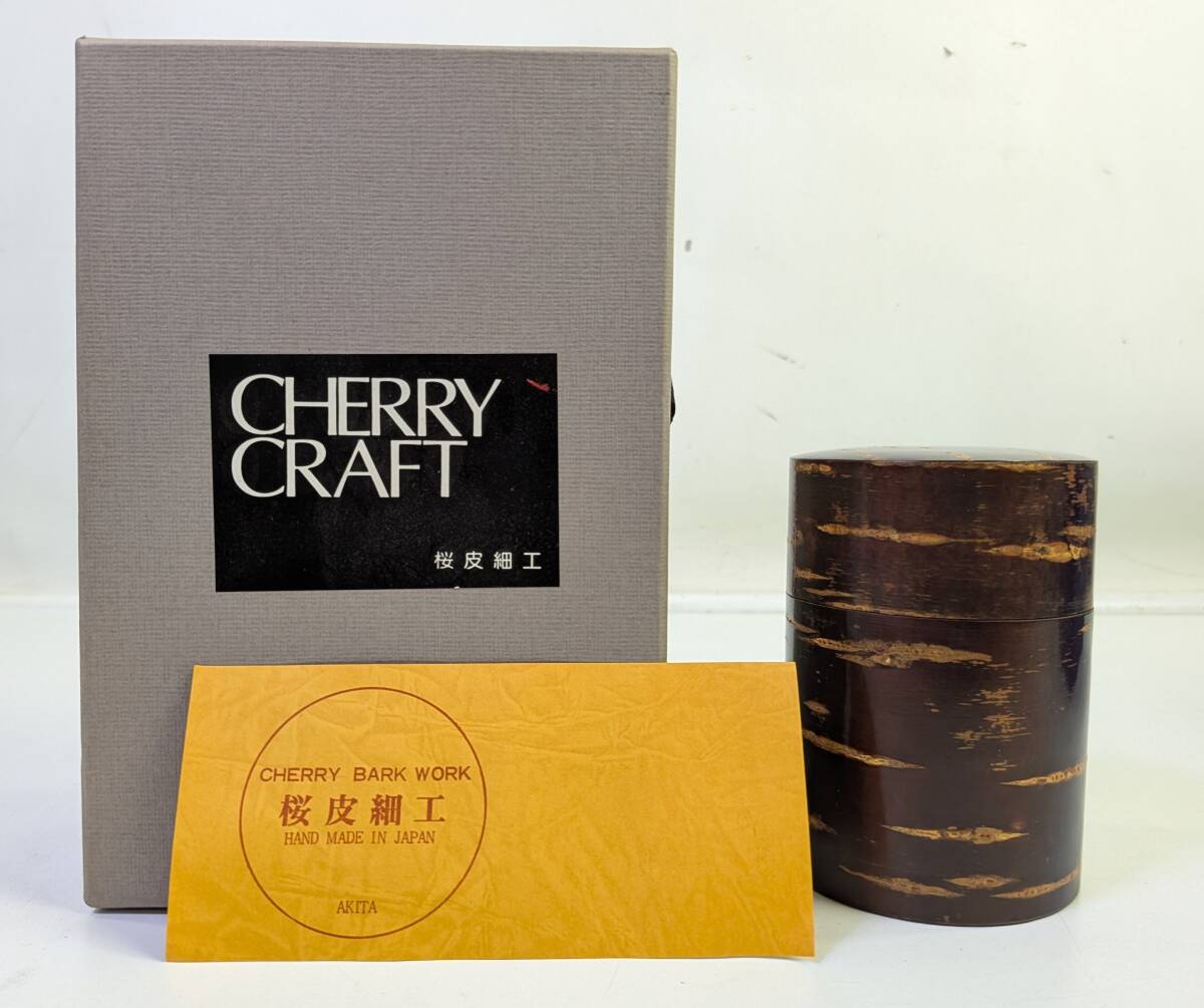 - □桜皮細工 茶筒 秋田 CHERRY CRAFT 伝統工芸品 商品型番 AK-43 CHERRY BARK WORK HAND MADE IN JAPAN AKITA