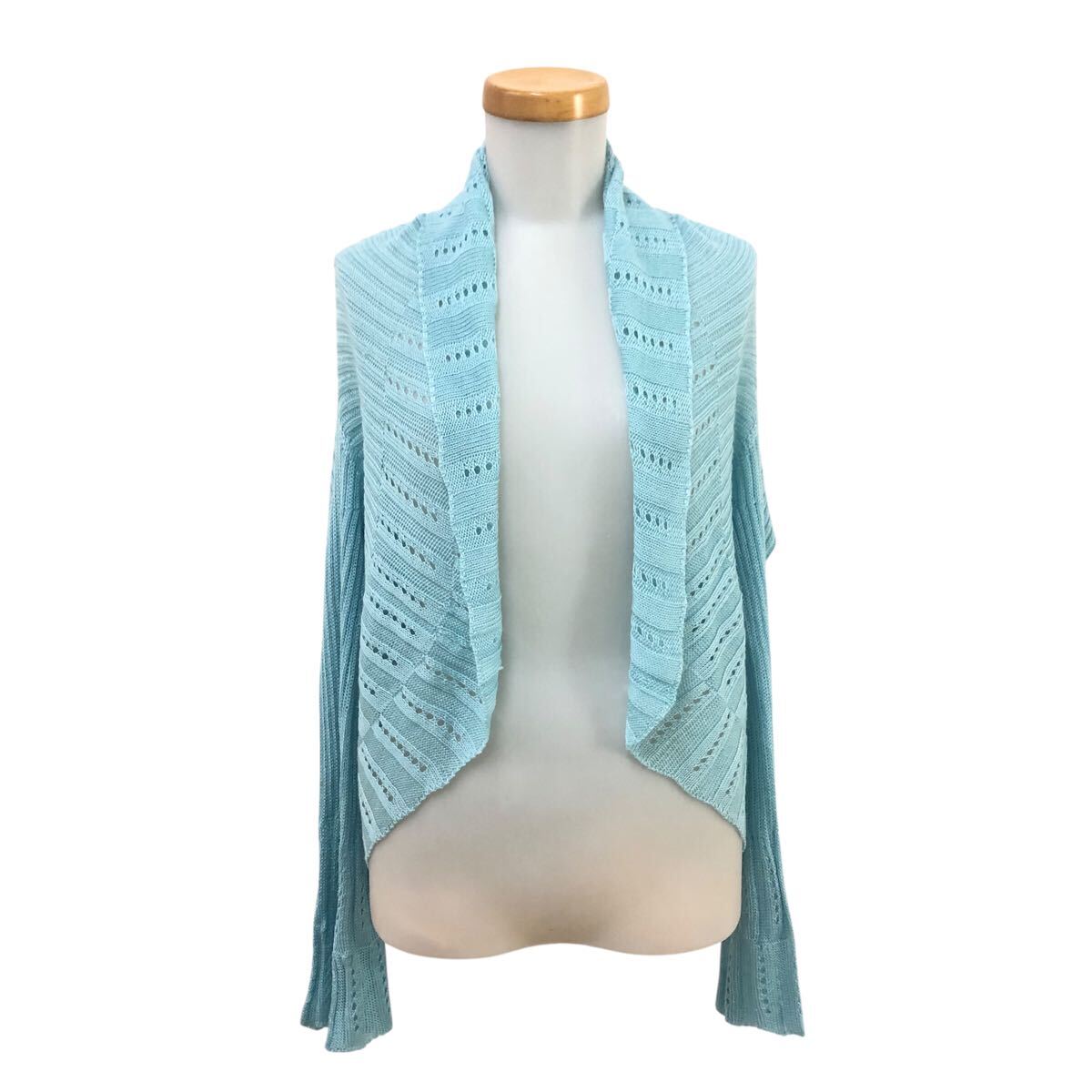 - Nm312-10 LANVIN COLLECTION ランバンコレクション リネン混 麻混 長袖 ニット カーディガン カーデ 上着 羽織り トップス 水色 レディース