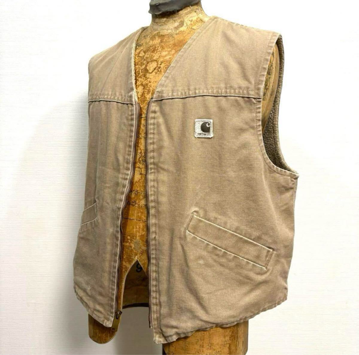 > L 良品 00s USA製 カーハート V13 SDL シェルパ ダックベスト サンド アメリカ アメカジ y2k 古着 キャンバス バイク バイカー ライダース