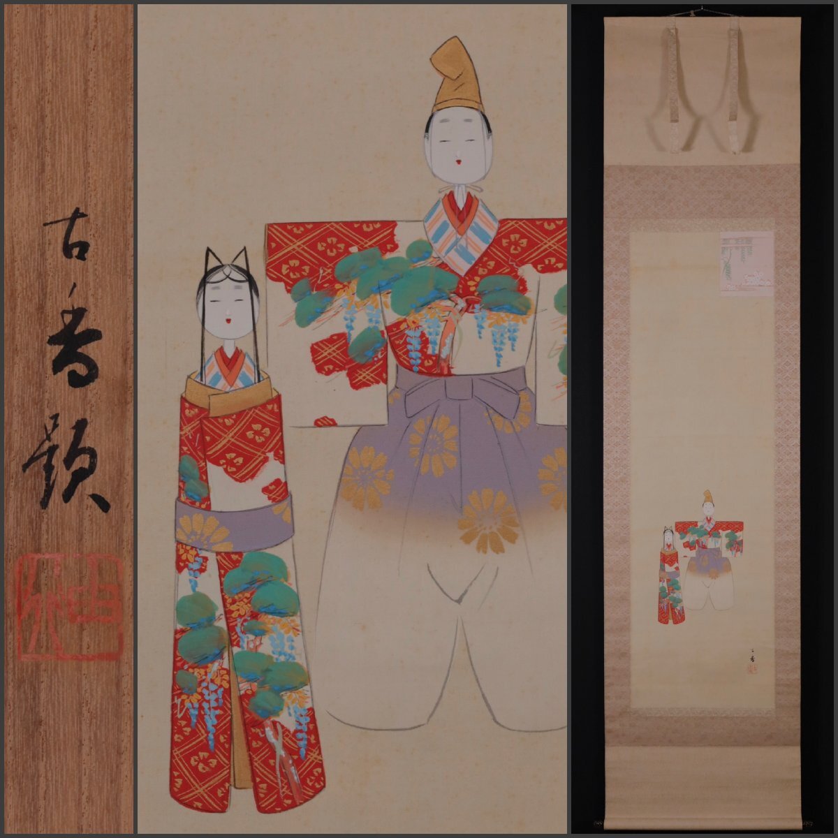 - 【模写】吉】12563 岩佐古香 雛図 共箱 二重箱 竹内栖鳳・谷口香橋師事 四条派 愛知県の人 茶掛け 茶道具 風俗画 掛軸 掛け軸 骨董品