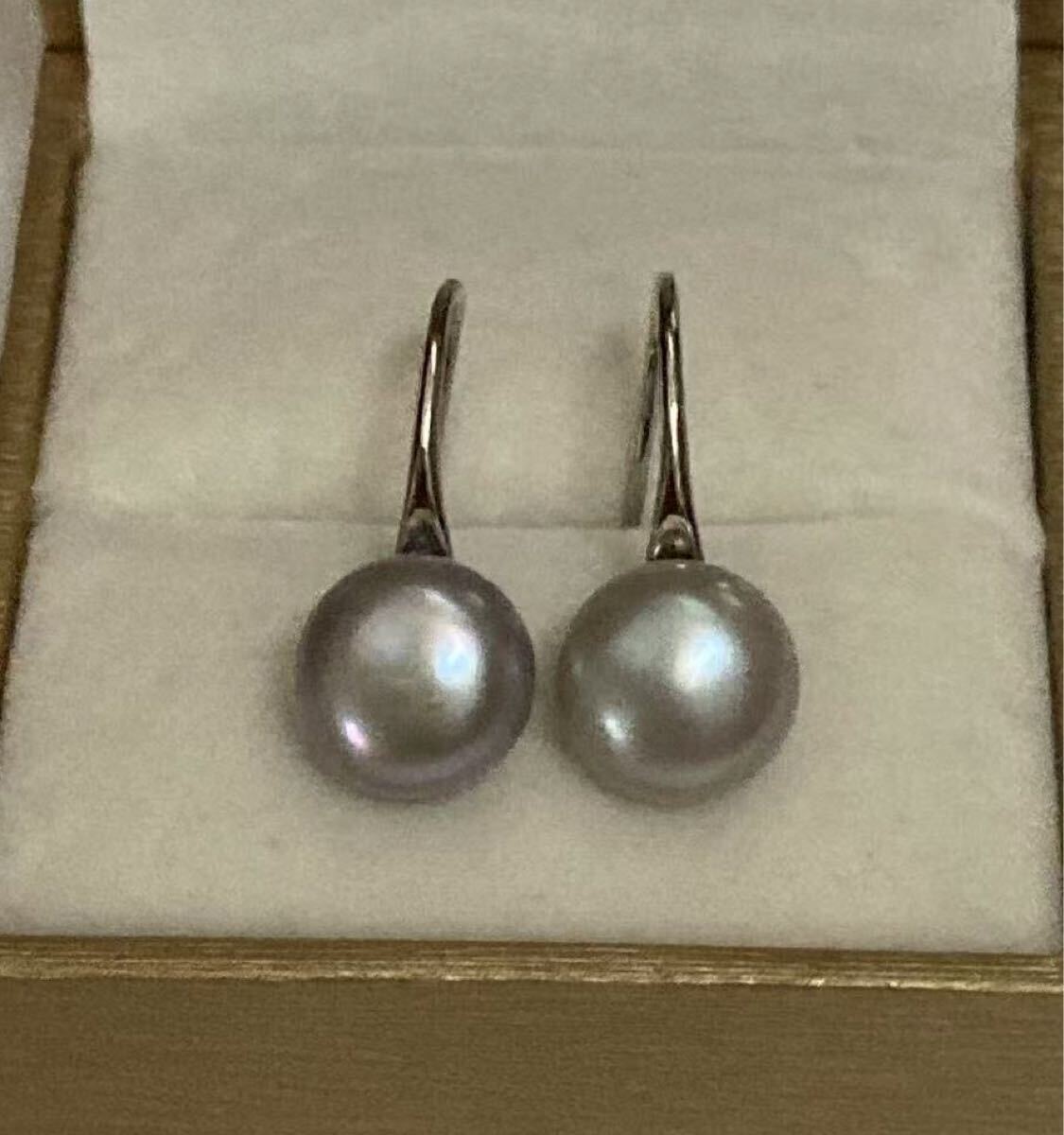 - 天然淡水真珠ピアス グレー 本真珠 パールピアス 約9mm