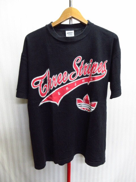 > USA製 アディダス 90sヴィンテージ ビッグトレフォイルTシャツ メンズUS M Lサイズ 黒赤 三つ葉ロゴTシャツ アメリカ製カットソー07042