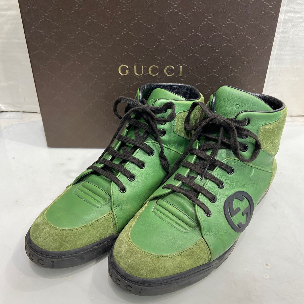 - 【GUCCI グッチ】363731 ハイカットスニーカー グリーン US8.5 スウェード レザー 箱付き 2507oki t