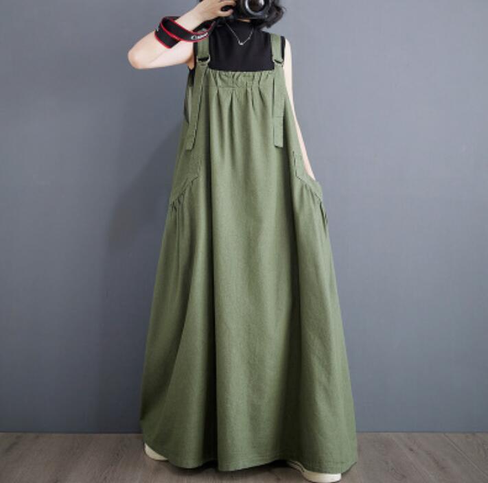 - 新入荷 人気ジャンパースカート レディース ワンピース サロペットスカート キャミワンピース ロングワンピース マキシ丈 グリーン