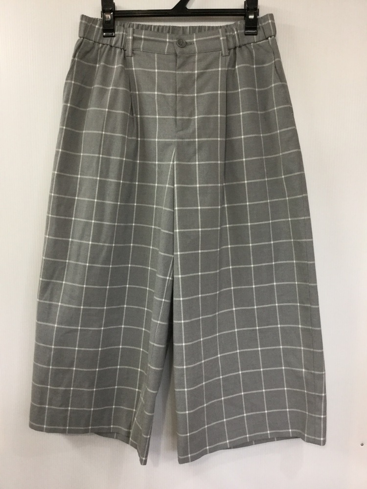 > コムサマチュア(Comme ca Mature) ゆったりサイズ グレーに白格子 ワイドパンツ ウエストゴム サイズ13