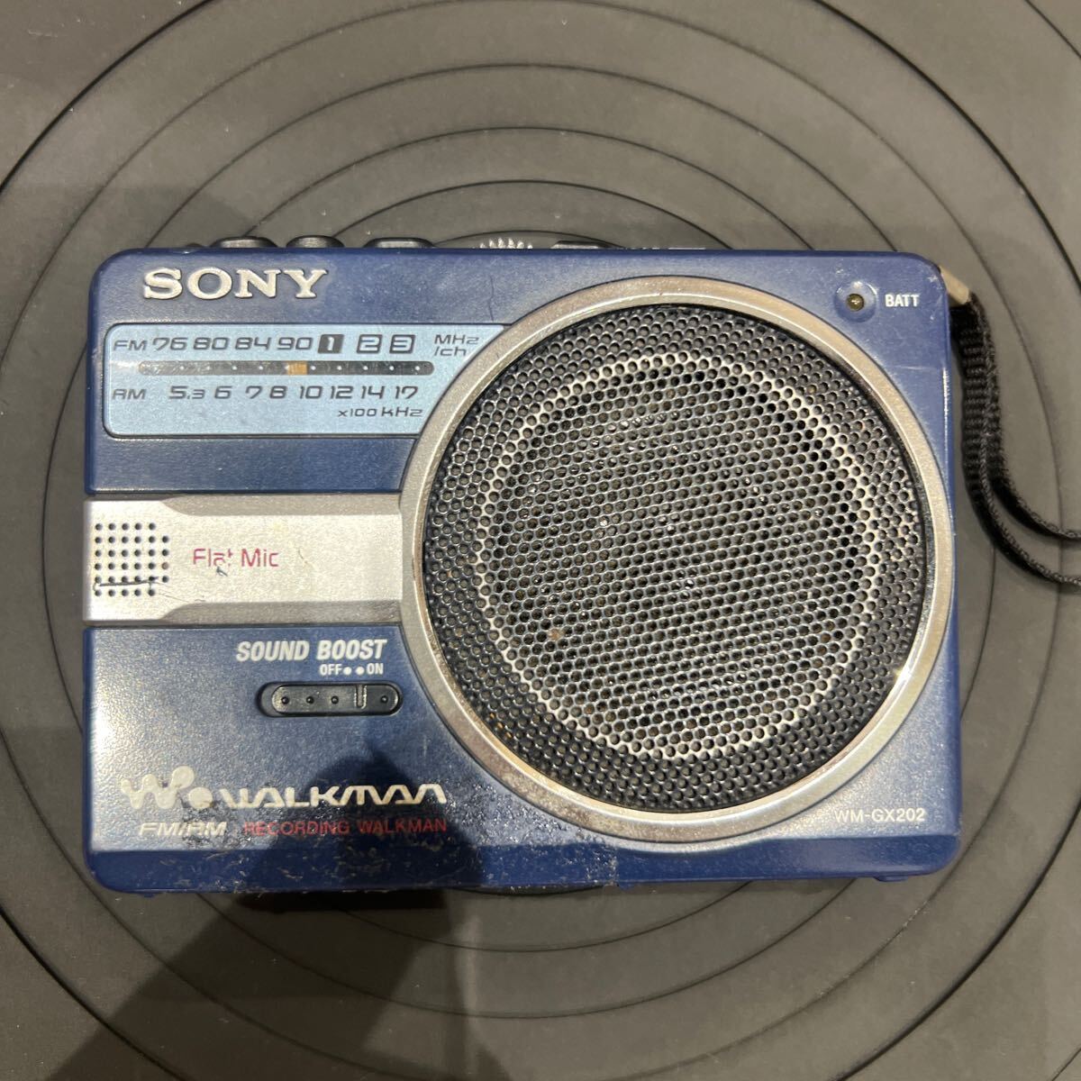 > SONY カセットウォークマンWM-GX202 電池蓋なし 巻き戻しボタンなし 通電はしますがカセット不動 ラジオつきました ジャンク扱い