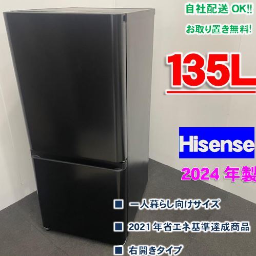 > Hisense ハイセンス 2024年製 2ドア 135L 冷凍冷蔵庫 ② HR-D13E4B ブラック系 再生品 S/N:10223☆IL08