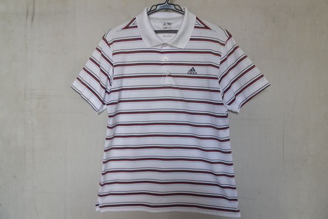 - adidas/アディダス/半袖ポロシャツ/ゴルフウェア/速乾性/マルチボーダー柄/裾サイドスリット/袖下メッシュ/白/ホワイト/Lサイズ(7/8R7)