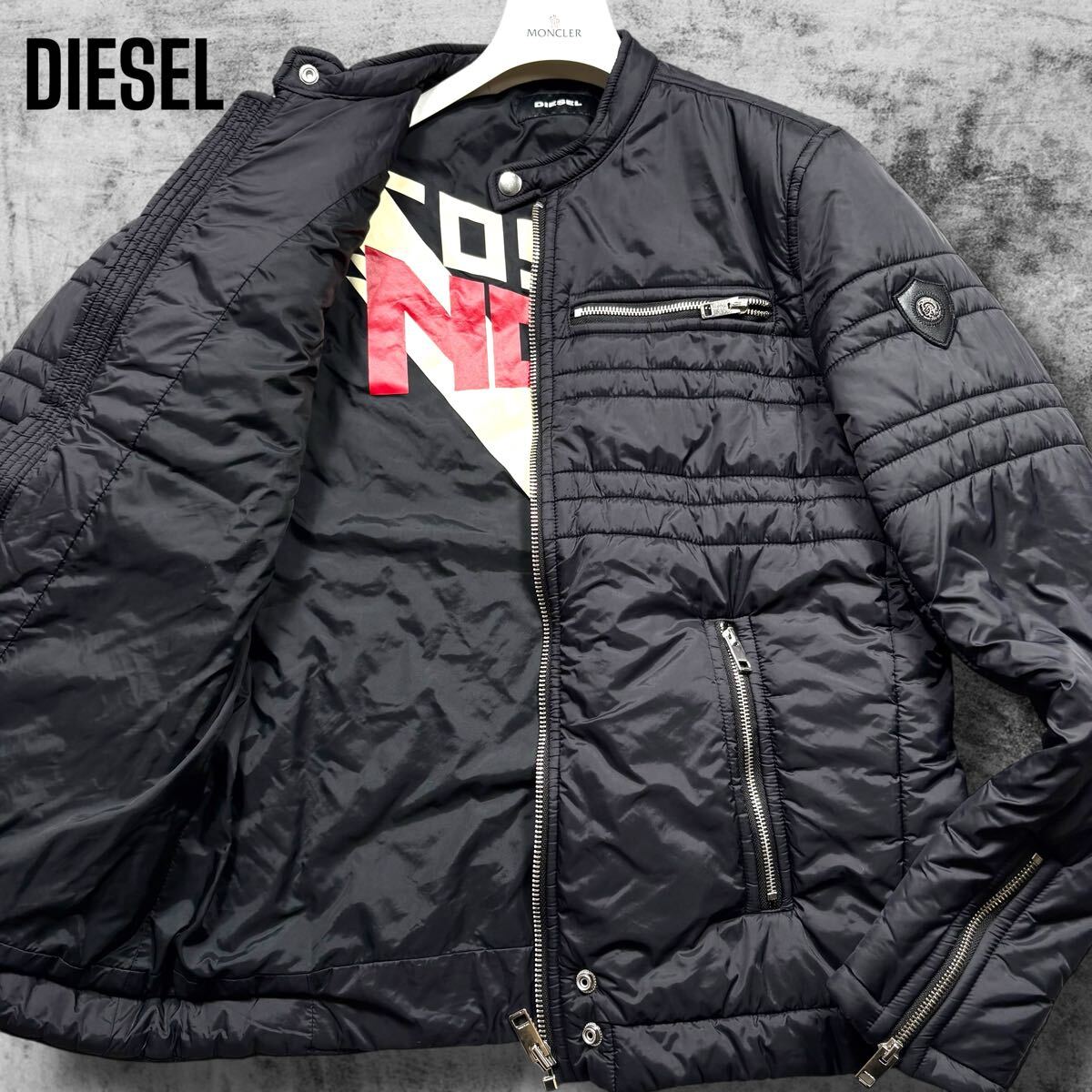 - 極美品/XL◎ディーゼル ライダース ブルゾン ダウンジャケット ロゴプレート マルチジップ アウター ブラック 黒 メンズ DIESEL