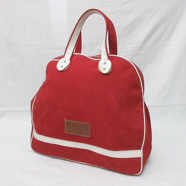 > ■ CANTON ボストンバッグ 鞄 手提げ Fabric Made by GEORGIA USA 底鋲 レザーパッチ 旅行 ヴィンテージ レトロ