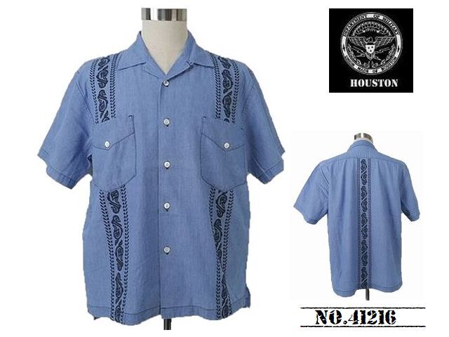 - 【送料無料 42%OFF】HOUSTON ヒューストン CHAMBRAY CUBA SHIRT / シャンブレー キューバシャツ NO.41216 BLEACH_Lサイズ