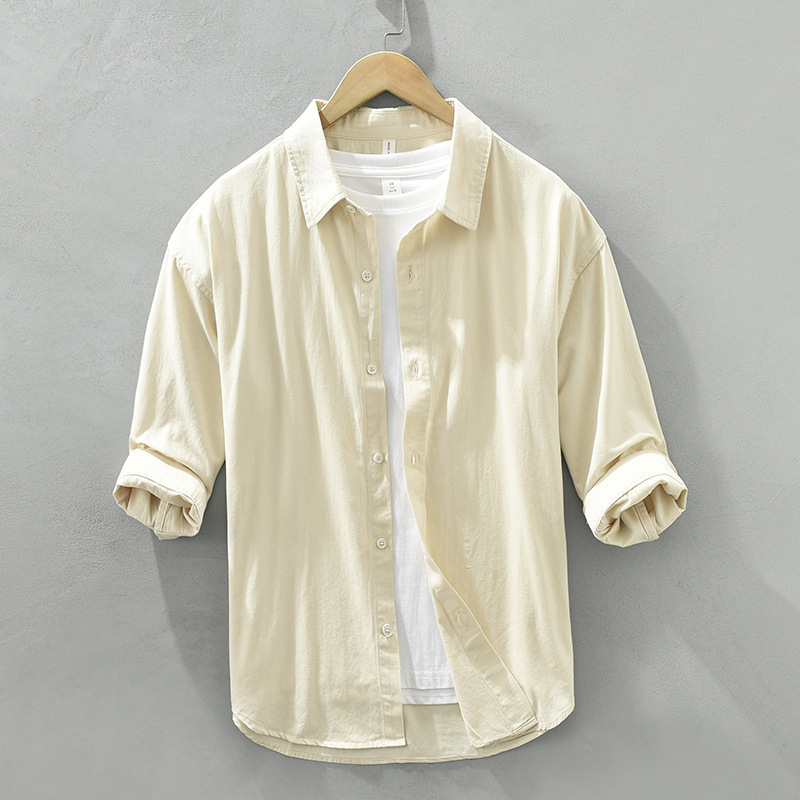- 新品セール★メンズ 七分袖シャツ 無地 コットン100% 薄手 清涼感 通気性 リネンシャツ シャツ 春夏 カジュアル 心地良しアプリコットM~3XL