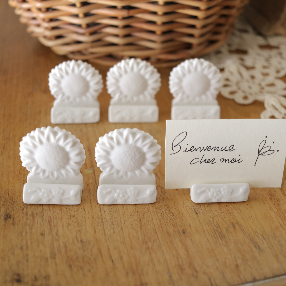 - 『フランスアンティーク 6セット 花模様のカードホルダー』白 陶器 カードホルダー 結婚式 パーティー お誕生日会 ビンテージ 陶器 花 皿