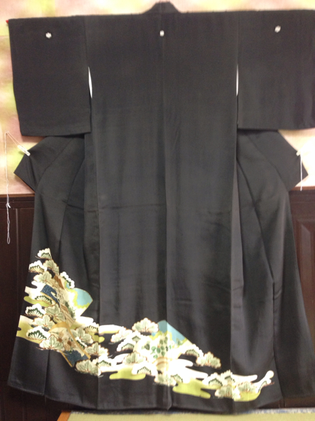 - 黒留袖(身丈157) 松桐菊模様 金糸 金箔五三桐の家紋 041503