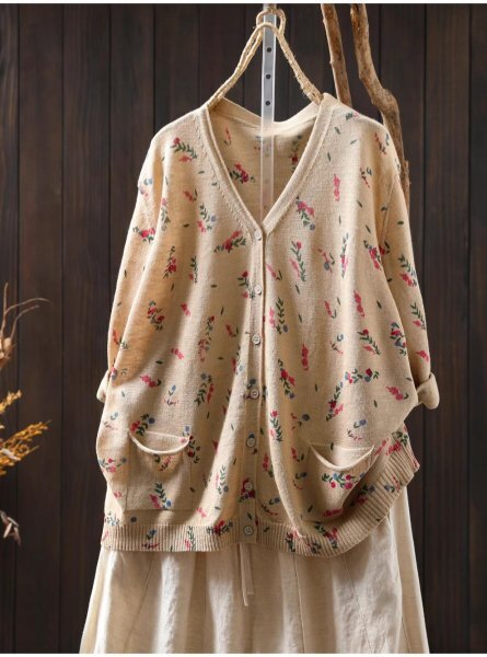 - 25zy サマーニット レディース トップス カーディガン ラフ タッチニット チュニック トップス ナチュラル 冷房紫外線対策 花柄 サラサラ9