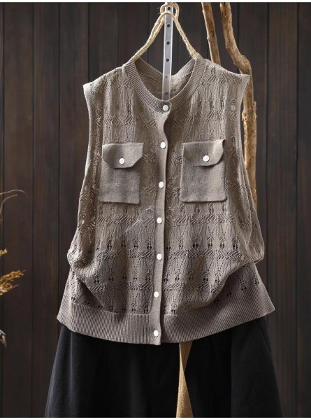 > 25zy サマーニット レディース トップス ノースリーブ 無地 丸首 ラフ 麻タッチニット チュニック トップス ナチュラル 麻混 サラサラ3
