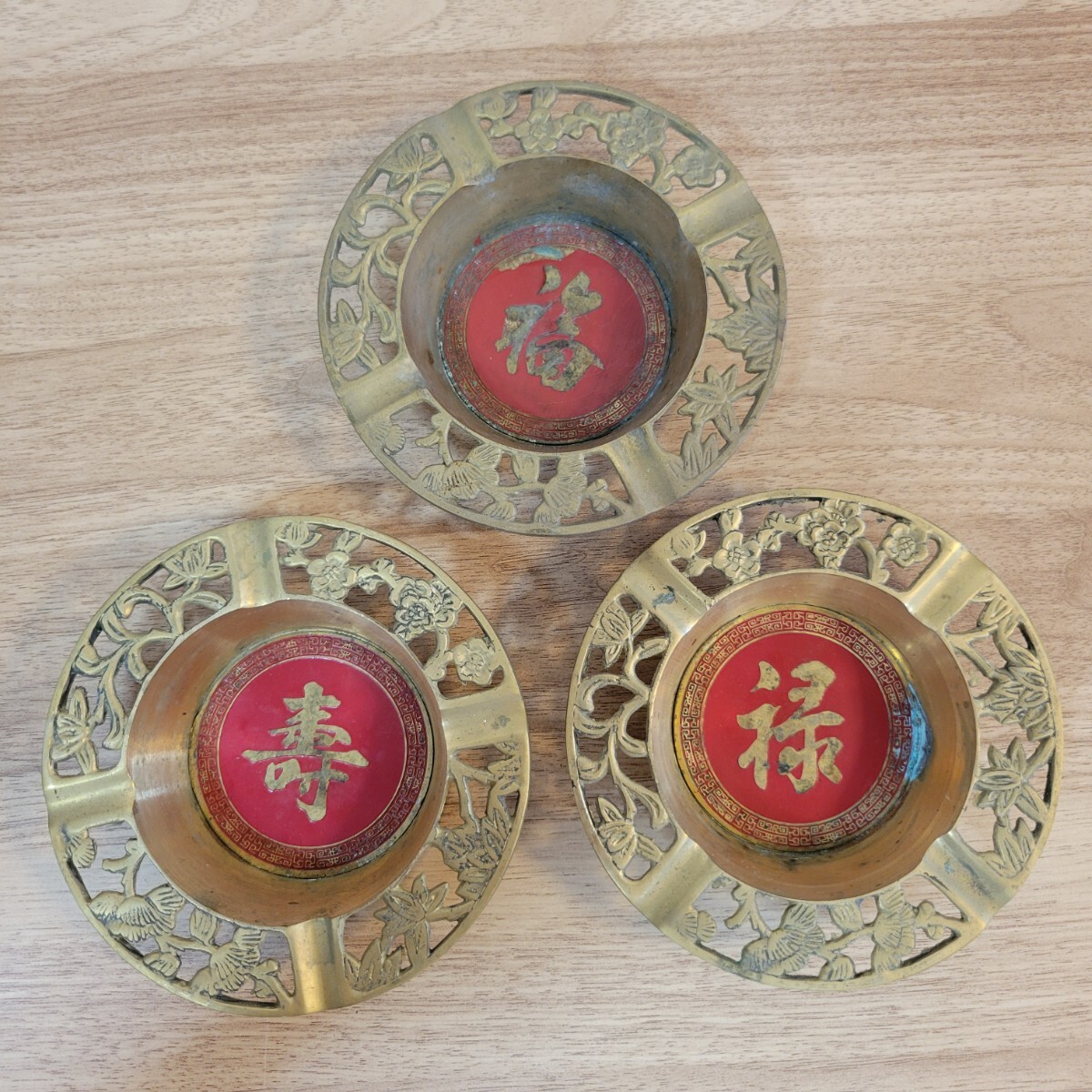 - 灰皿 飾り皿 中国 金属製 ヴィンテージ 真鍮 アッシュトレイ 中国美術