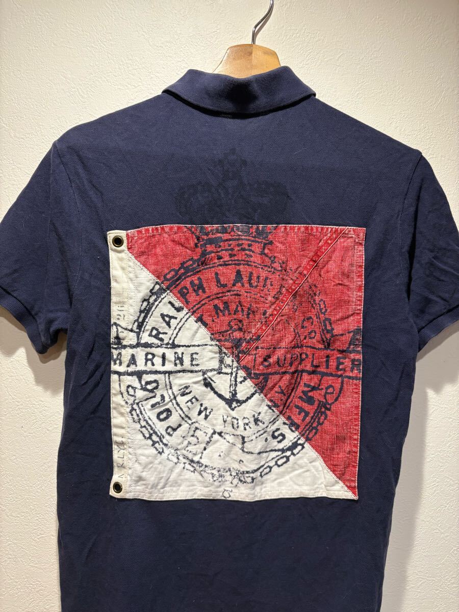 > 希少90‘s R.L.Y.C POLO Ralph Lauren MFRSバックフラッグデザイン 半袖ポロシャツ M