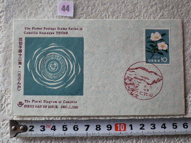 - FDC 花切手 さざんか 1961年 1貼1消 解説書無 ハトロン紙様の見かけないカシェ●44●