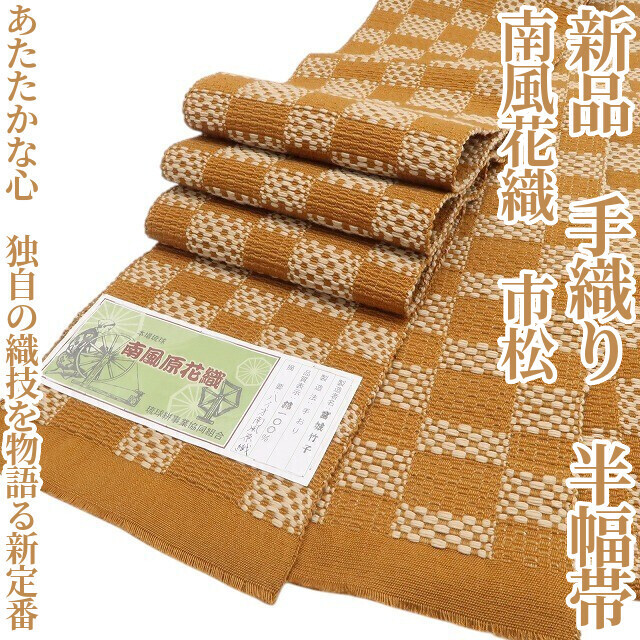 - tomihisa 新品 南風花織 手織り 市松 夏着物 浴衣 綿“あたたかな心、独自の織技を物語る新定番”半幅帯 6247