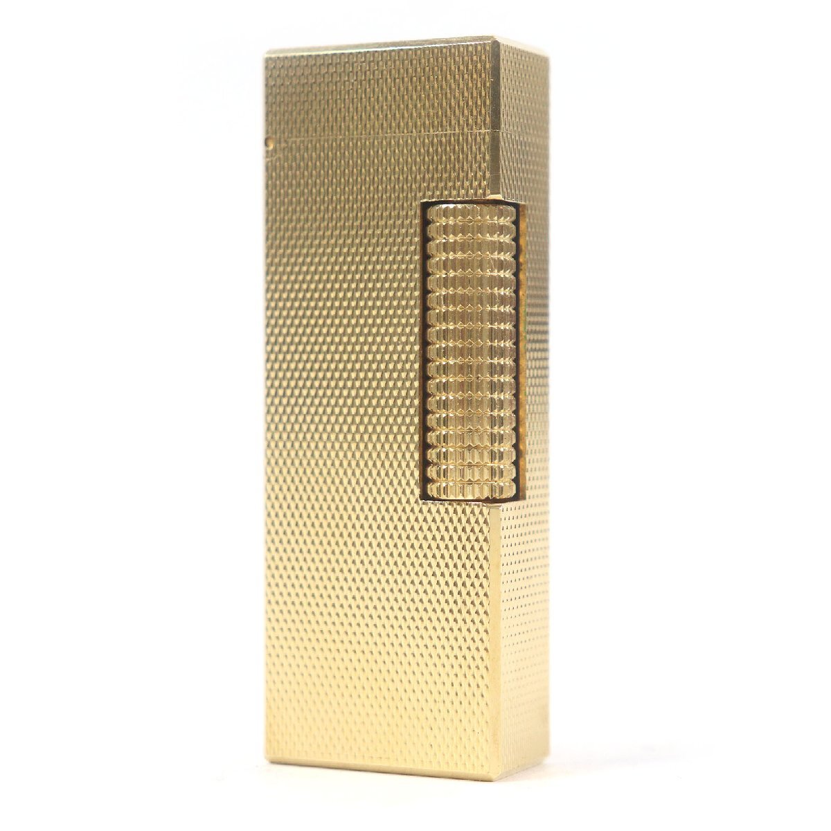 - 外装極美品□Dunhill ダンヒル ブロックチェック 総柄 スクエア ローラー式 喫煙具 ガスライター ゴールド スイス製 メンズ 着火不可