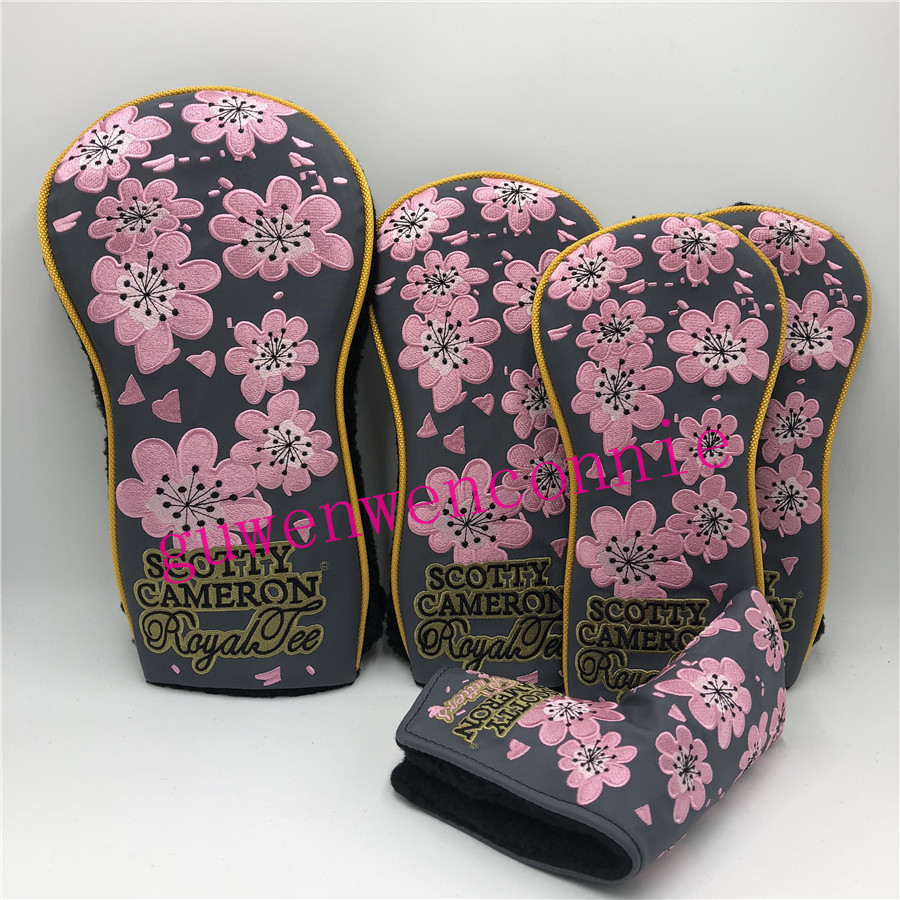 > スコッティキャメロン★ウッド用カバー1W ・3W UTx2 &パター用 5点セット★FLOWER ピンク
