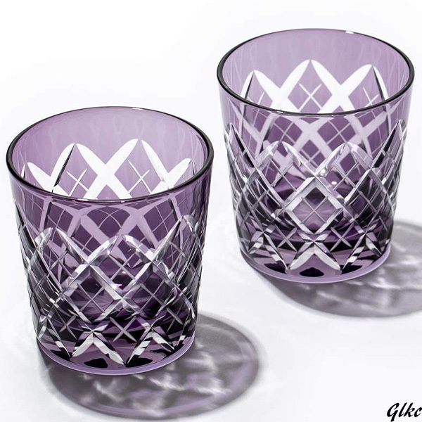 > 【日本の熟練職人が一つ一つ丁寧に手作り】 江戸切子 冷酒杯 ペア 矢来紋 江戸紫 伝統工芸品 日本製 ギフト デザイングラス 高級カップ